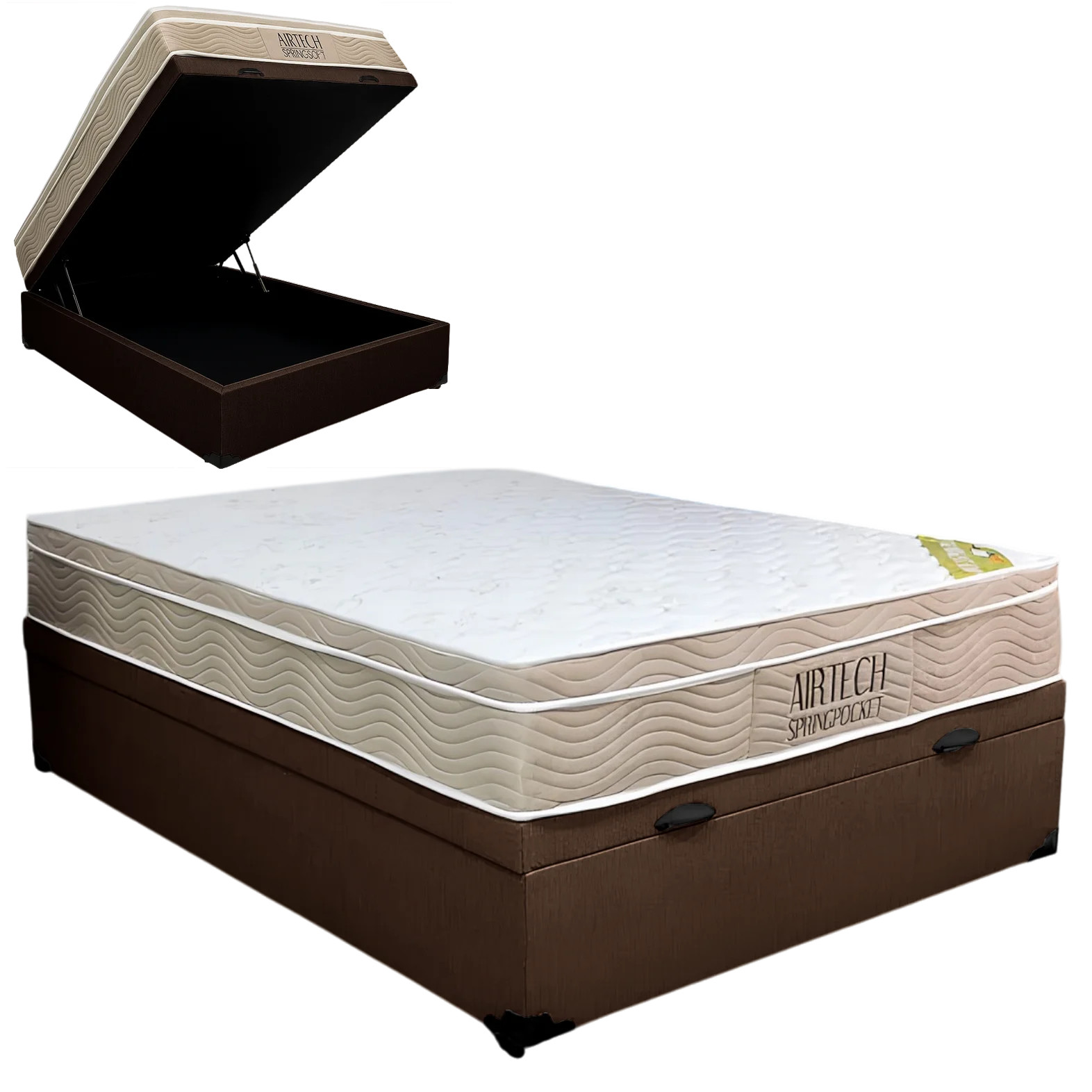 Colchão Casal Airtech Springpocket + Base Box Baú Marrom – ORTOBOM + BIOSTAR