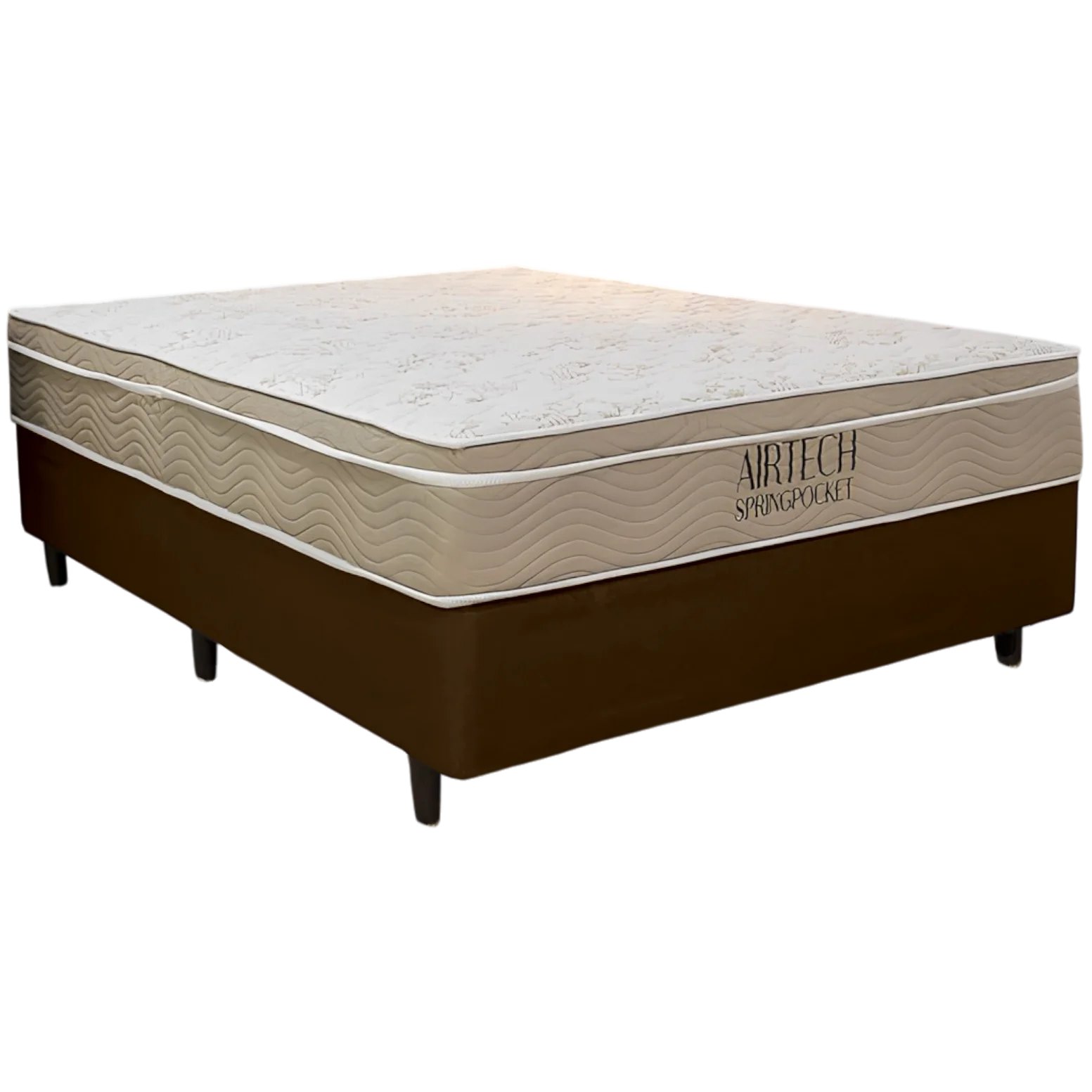 Colchão Casal Airtech Springpocket + Base Box Simples Corino Marrom – ORTOBOM + ALTO NÍVEL CAMAS E COLCHÕES