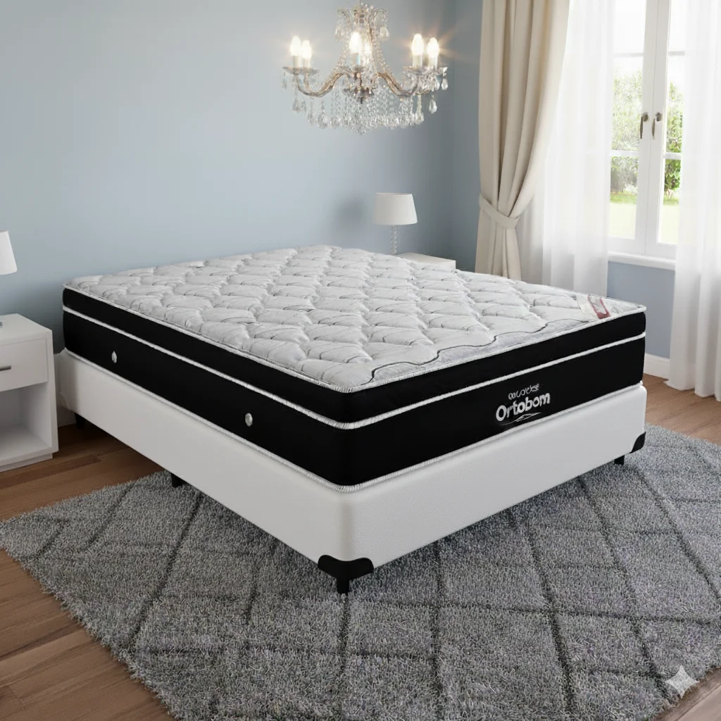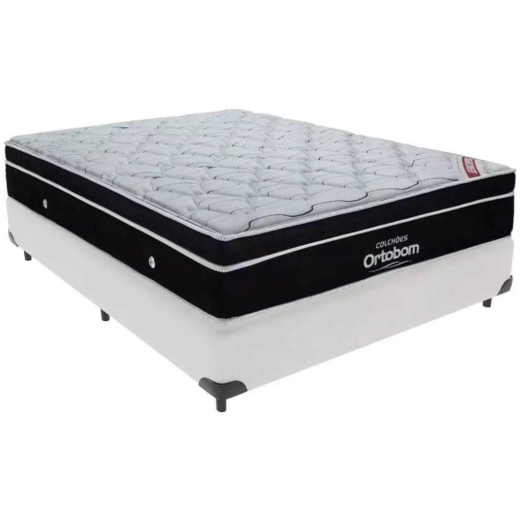 ColchÃo Casal Elegant Superpocket D33 + Base Box Simples Corino Branco – Ortobom + Alto NÍvel Camas E ColchÕes