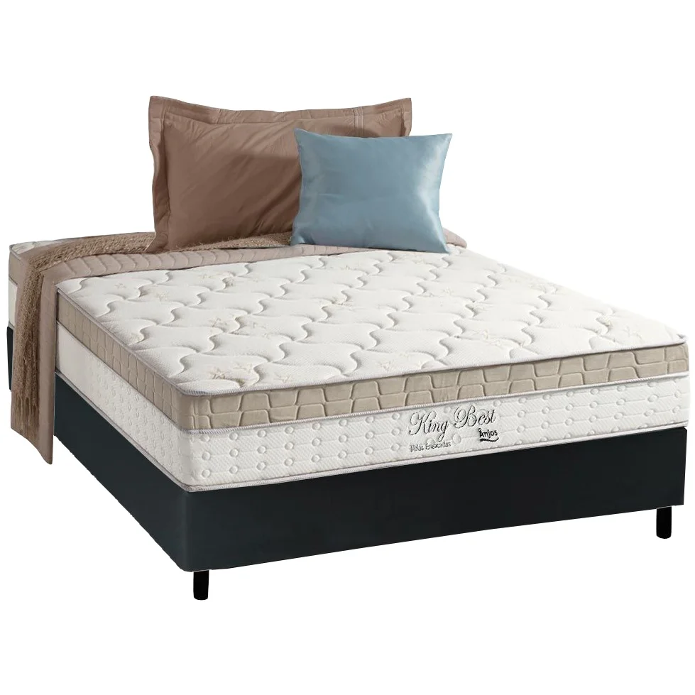 Colchão Casal King Best D28 + Base Box Simples Corino Preto – ANJOS COLCHÕES + BIOSTAR
