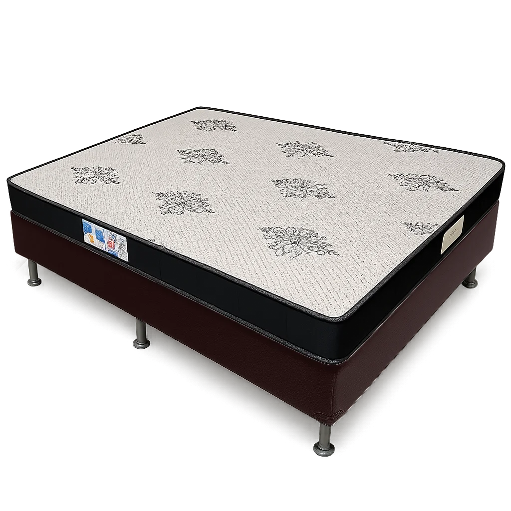 Colchão Casal Light D20 + Base Box Simples Corino Marrom – ECOTEC + ALTO NÍVEL CAMAS E COLCHÕES