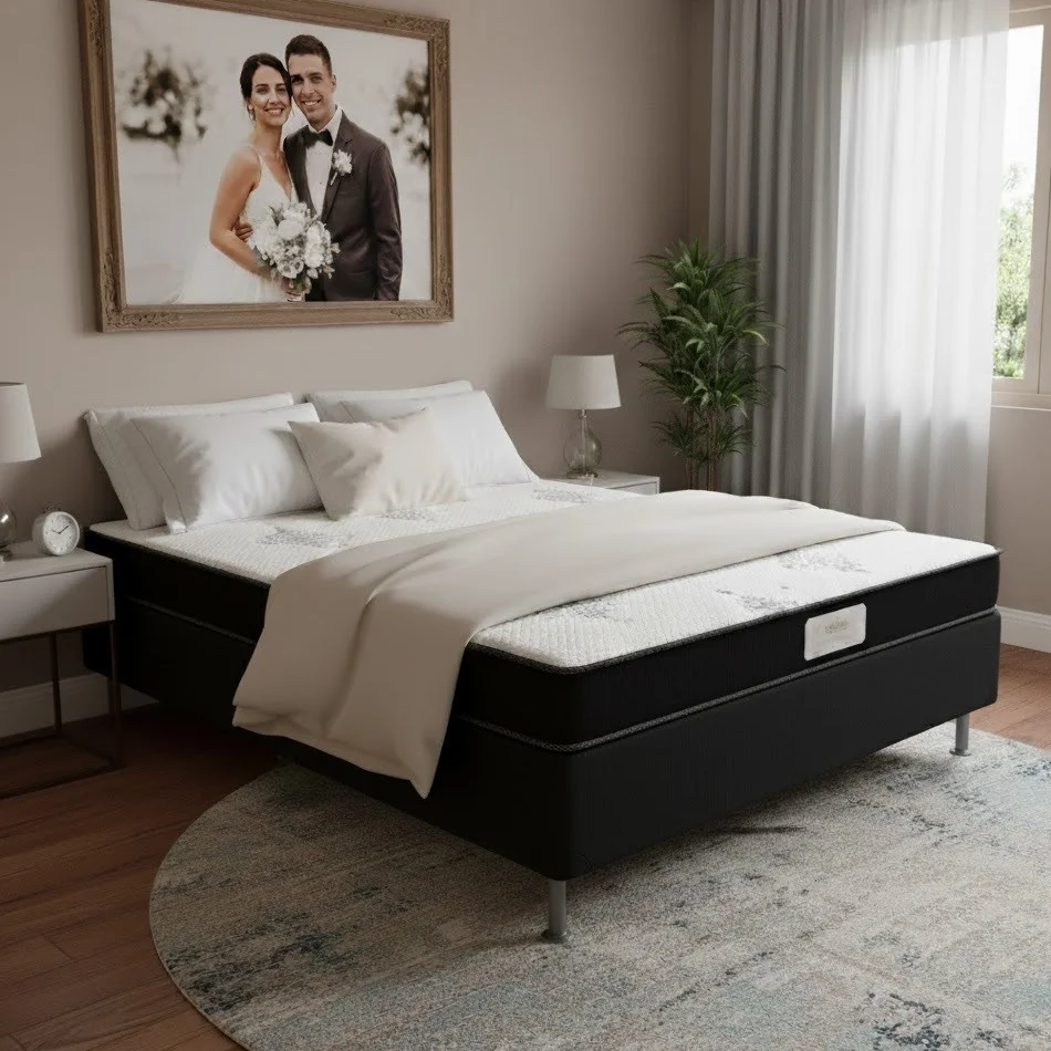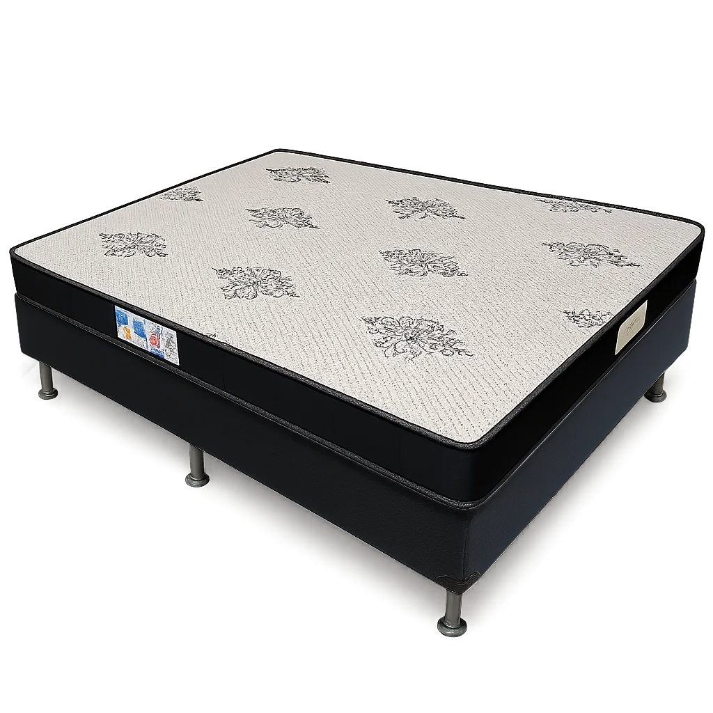 Colchão Casal Light D20 + Base Box Simples Corino Preto – ECOTEC + ALTO NÍVEL CAMAS E COLCHÕES