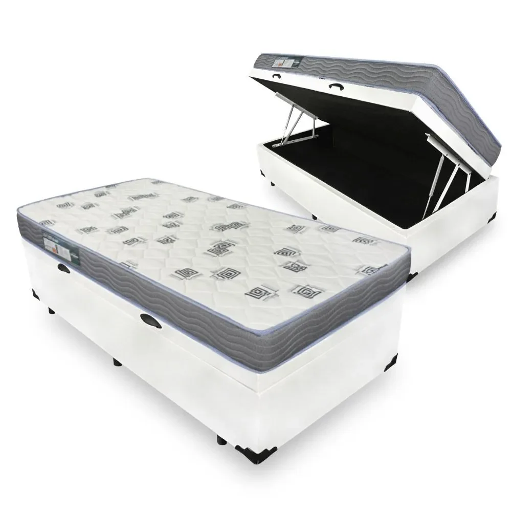Colchão Solteiro Light D33 + Base Box Baú Branco – ORTOBOM + BIOSTAR