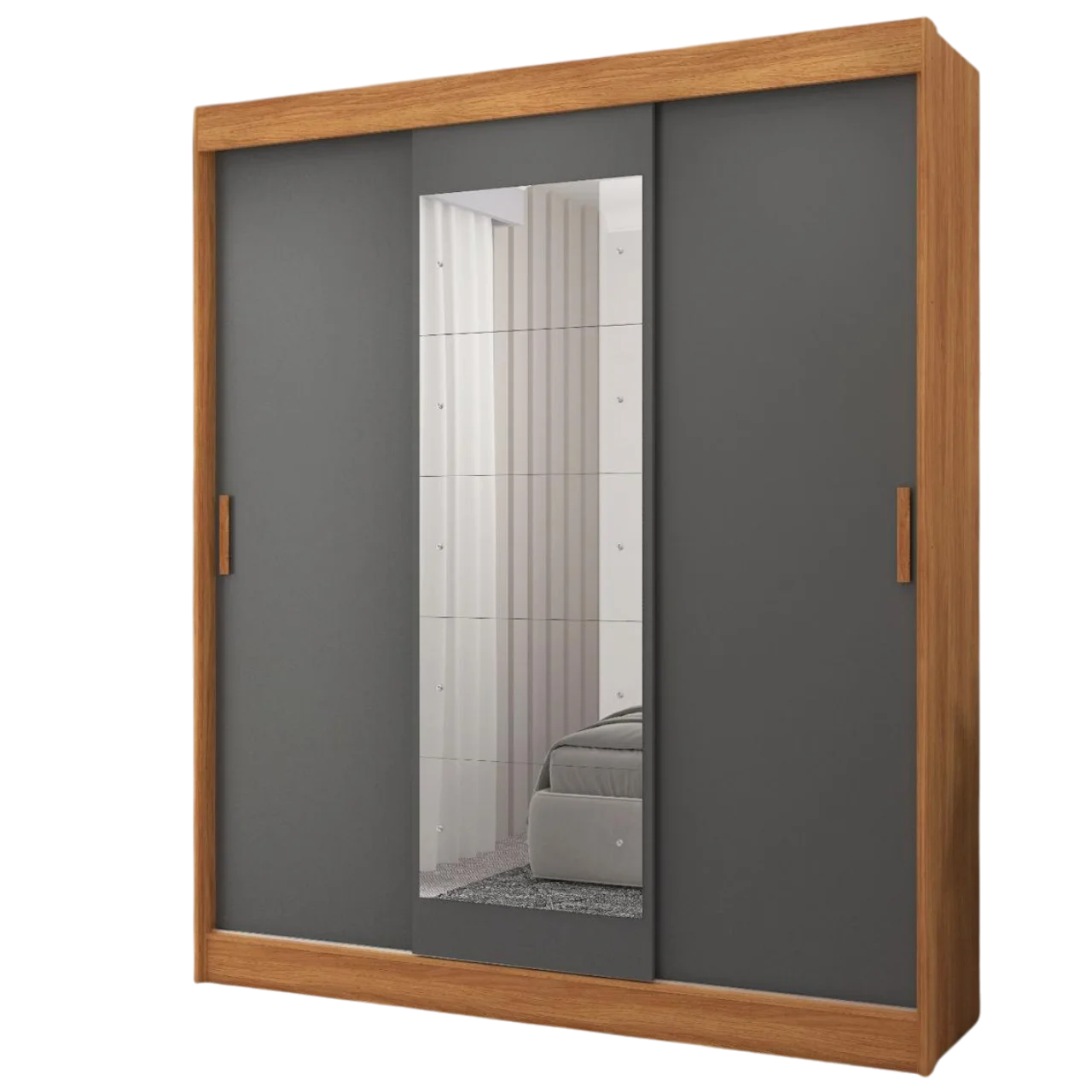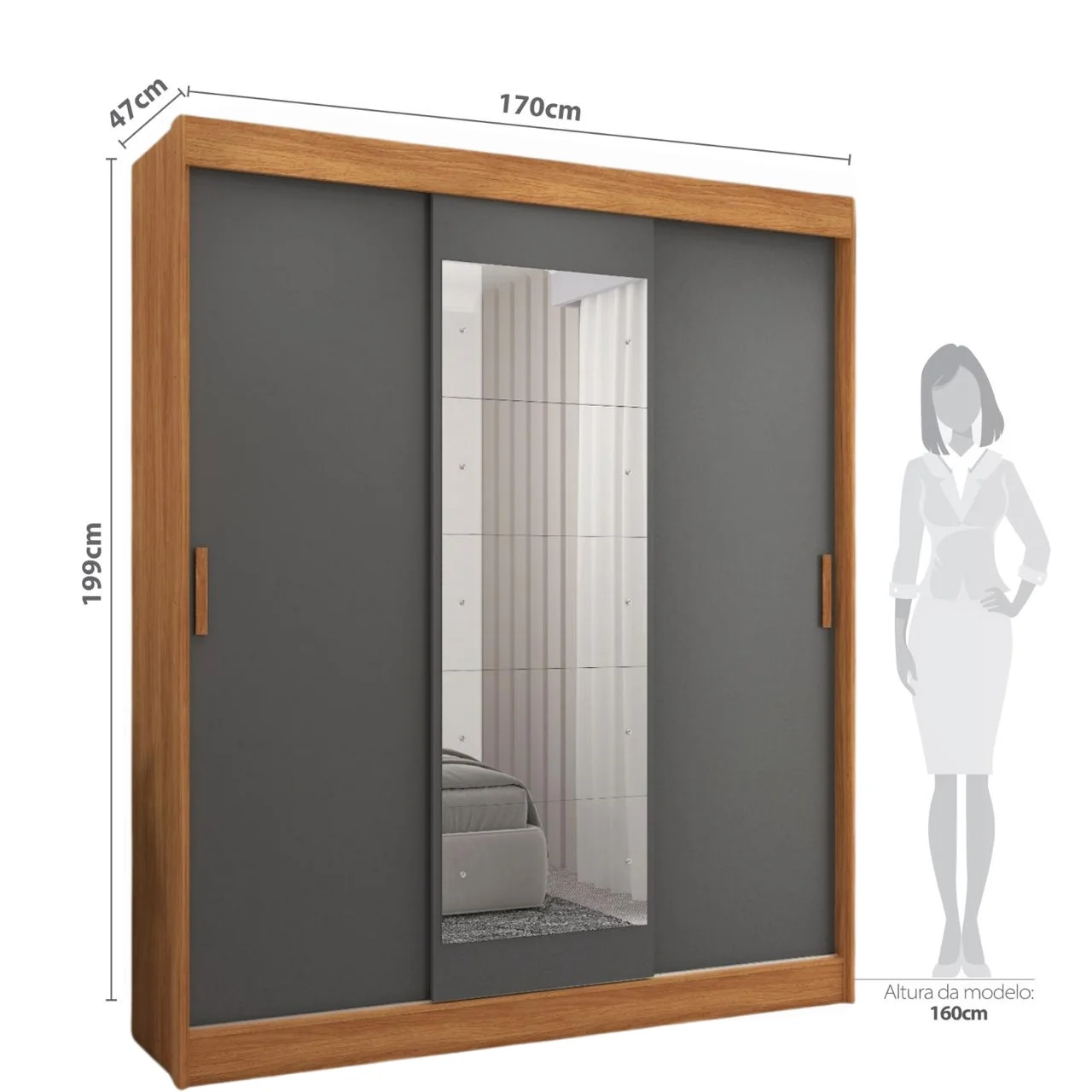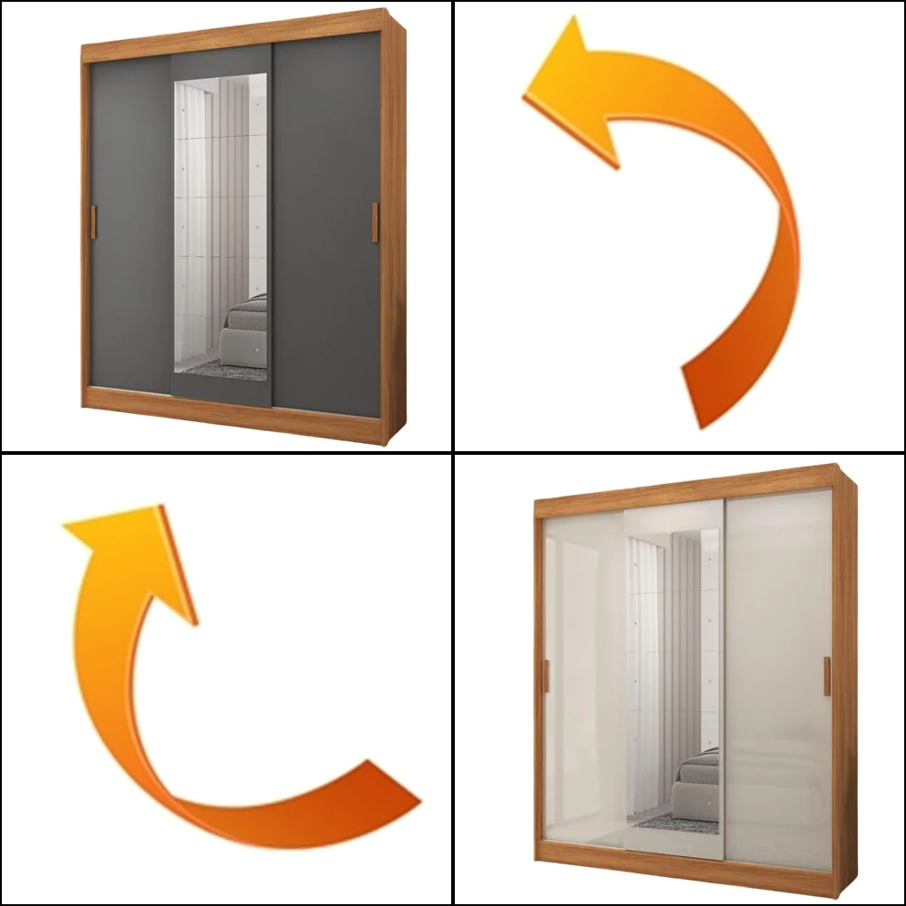 Guarda-Roupa 3 Portas (com espelho) Capri 1,70 m Cinamomo/Grafite/Off White – FELLICCI