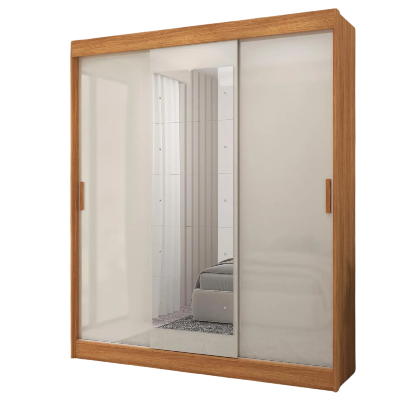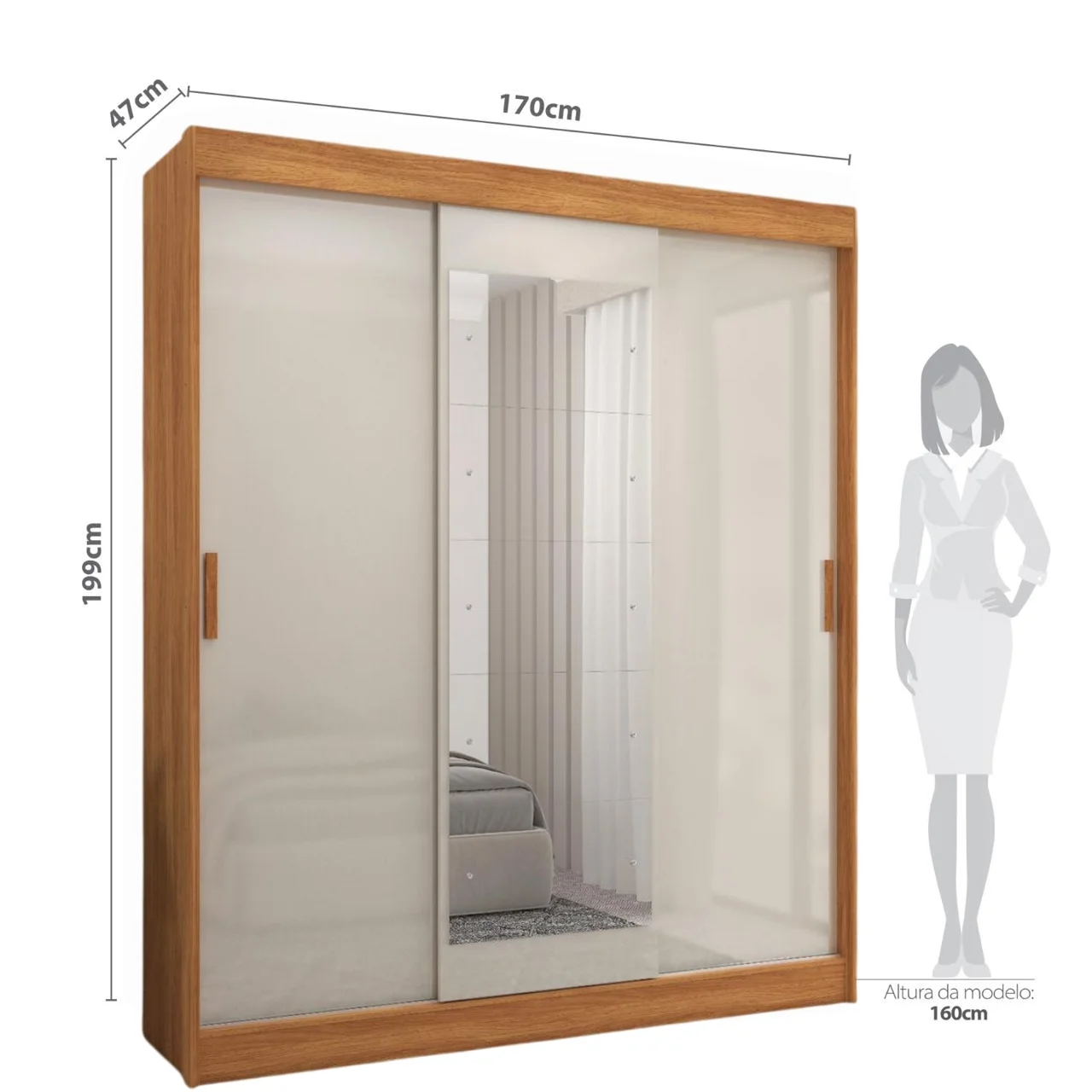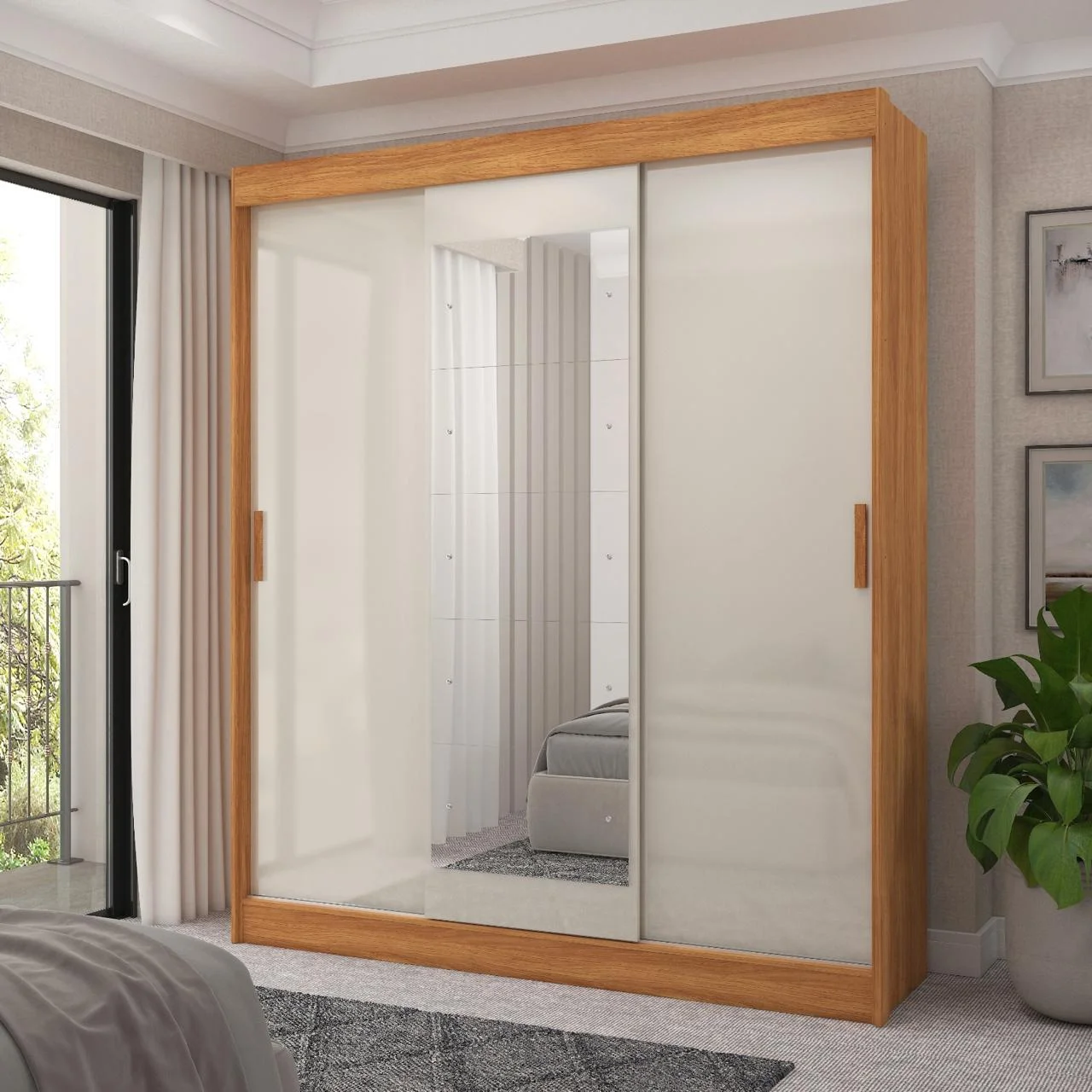 Guarda-Roupa 3 Portas (com espelho) Capri 1,70 m Cinamomo/Grafite/Off White – FELLICCI