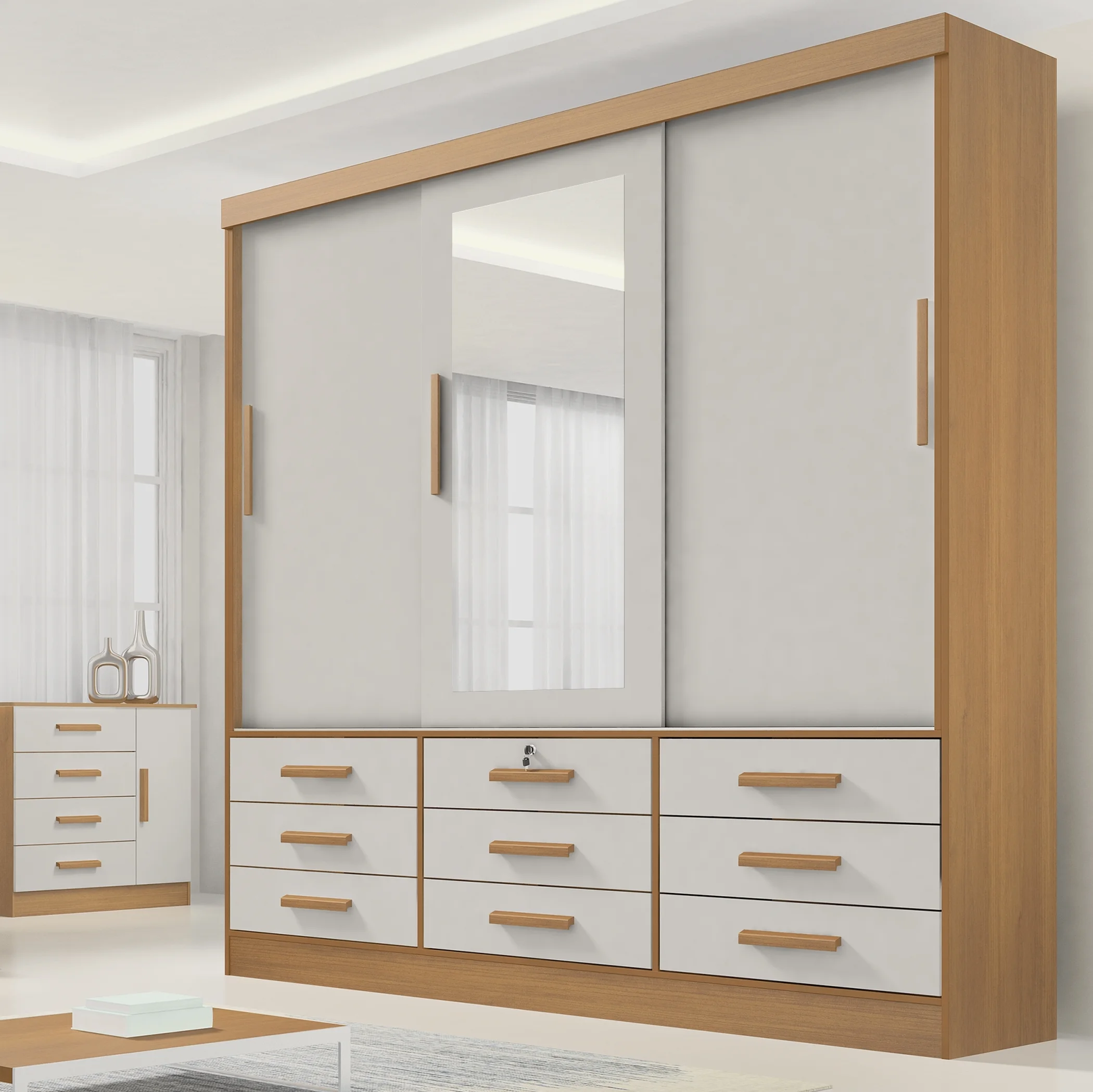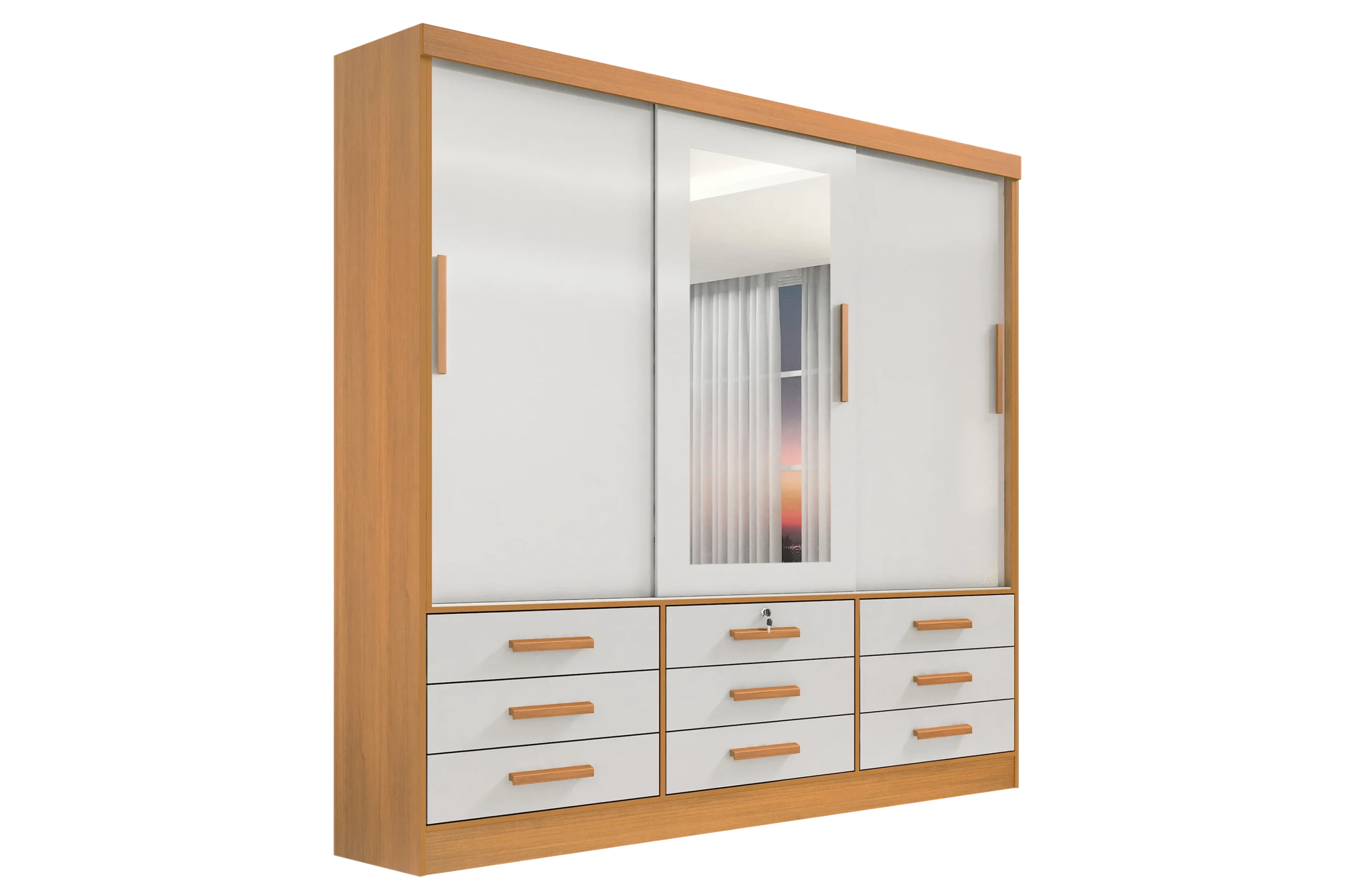 Guarda-Roupa 3 Portas Meridian Cinamono/Off White – D’DORO MÓVEIS