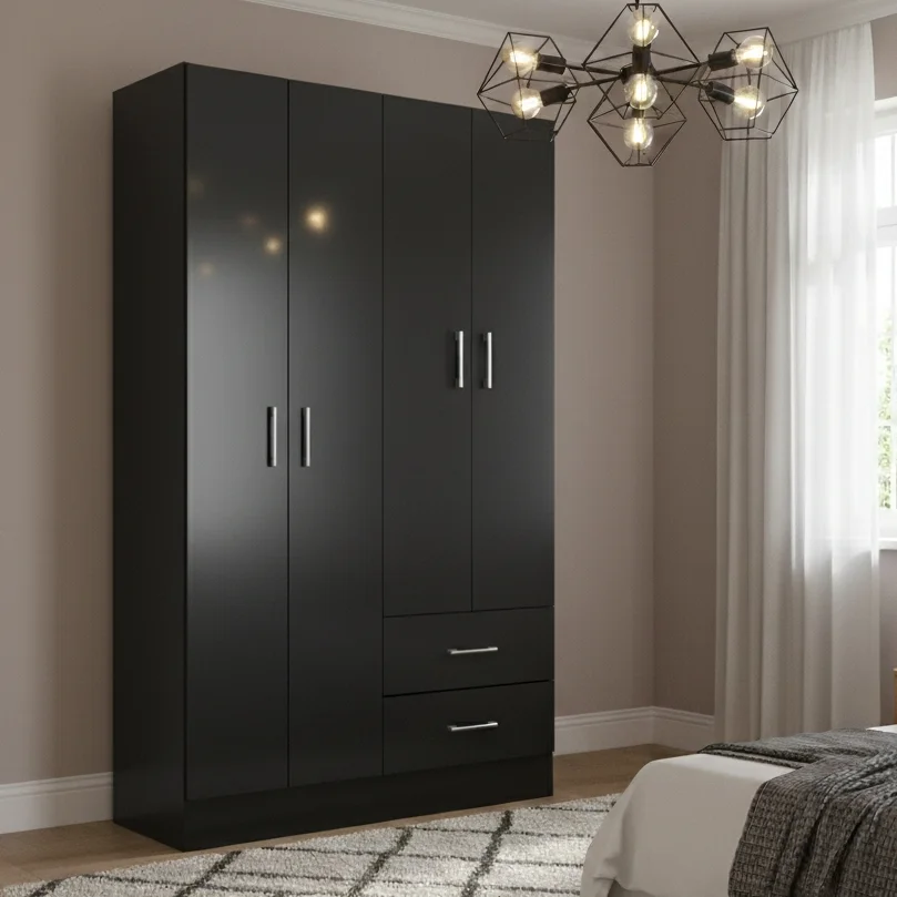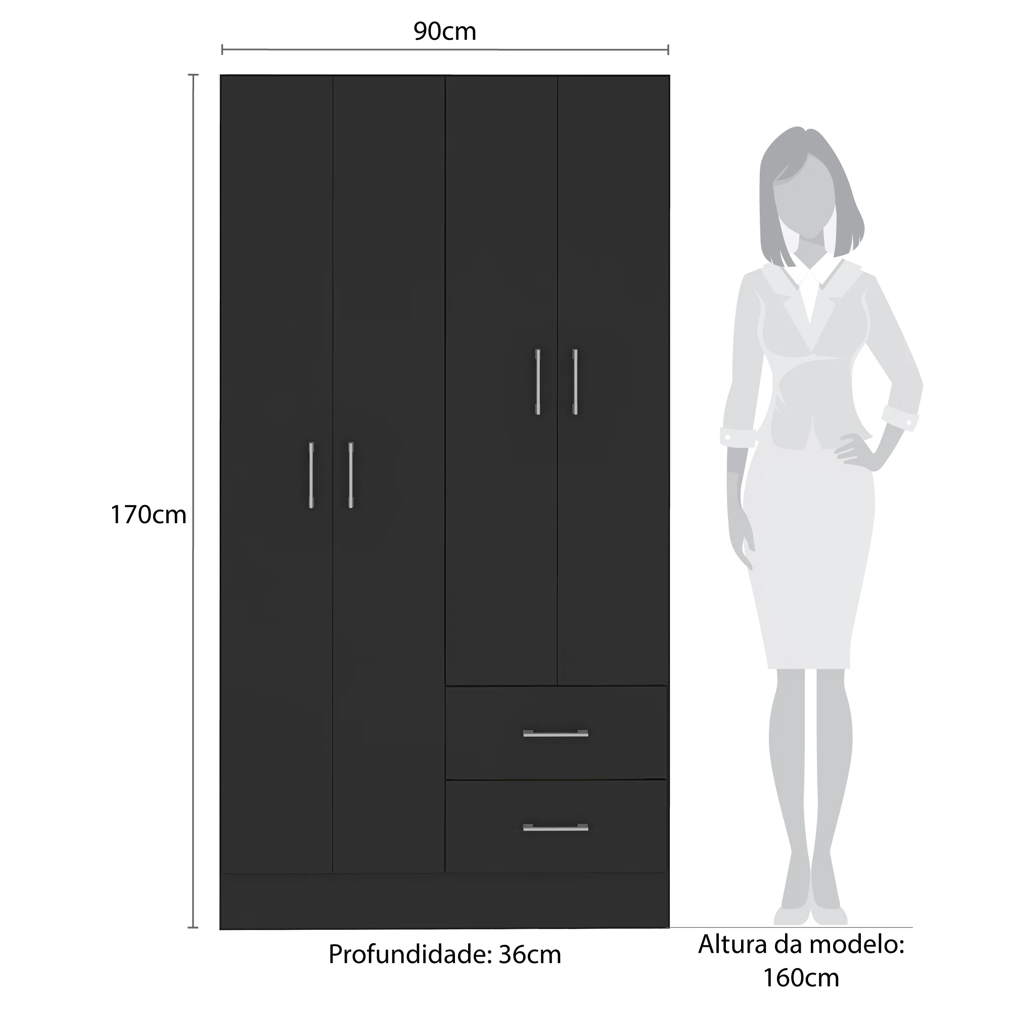 Guarda-Roupa 4 Portas Panamá 4002 0,90 m Preto – FELLICCI