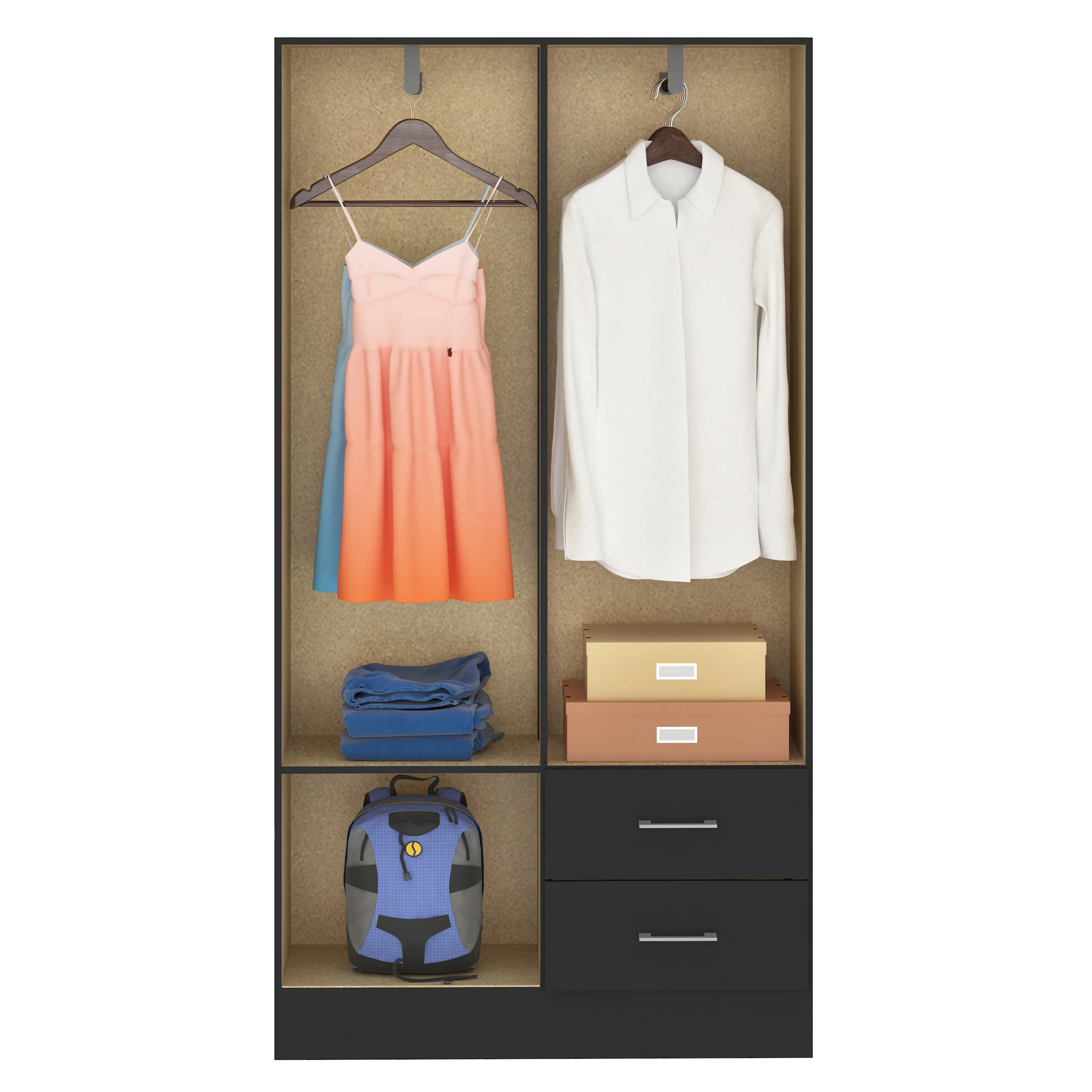 – Duas gavetas com corrediças plásticas PVC