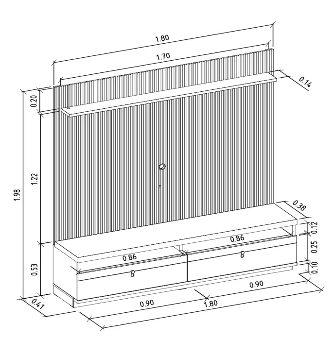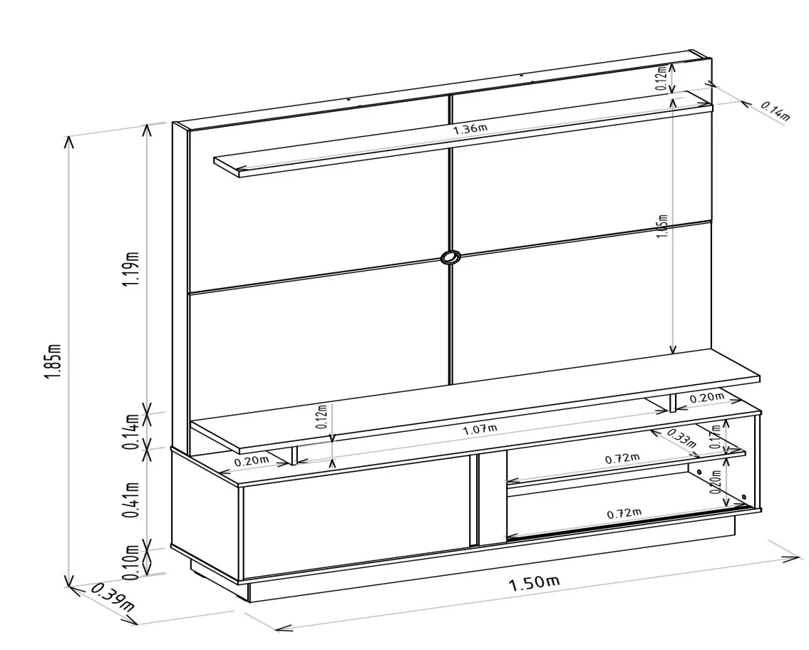– Espaço para TV com 105 cm x 150 cm (AxL)