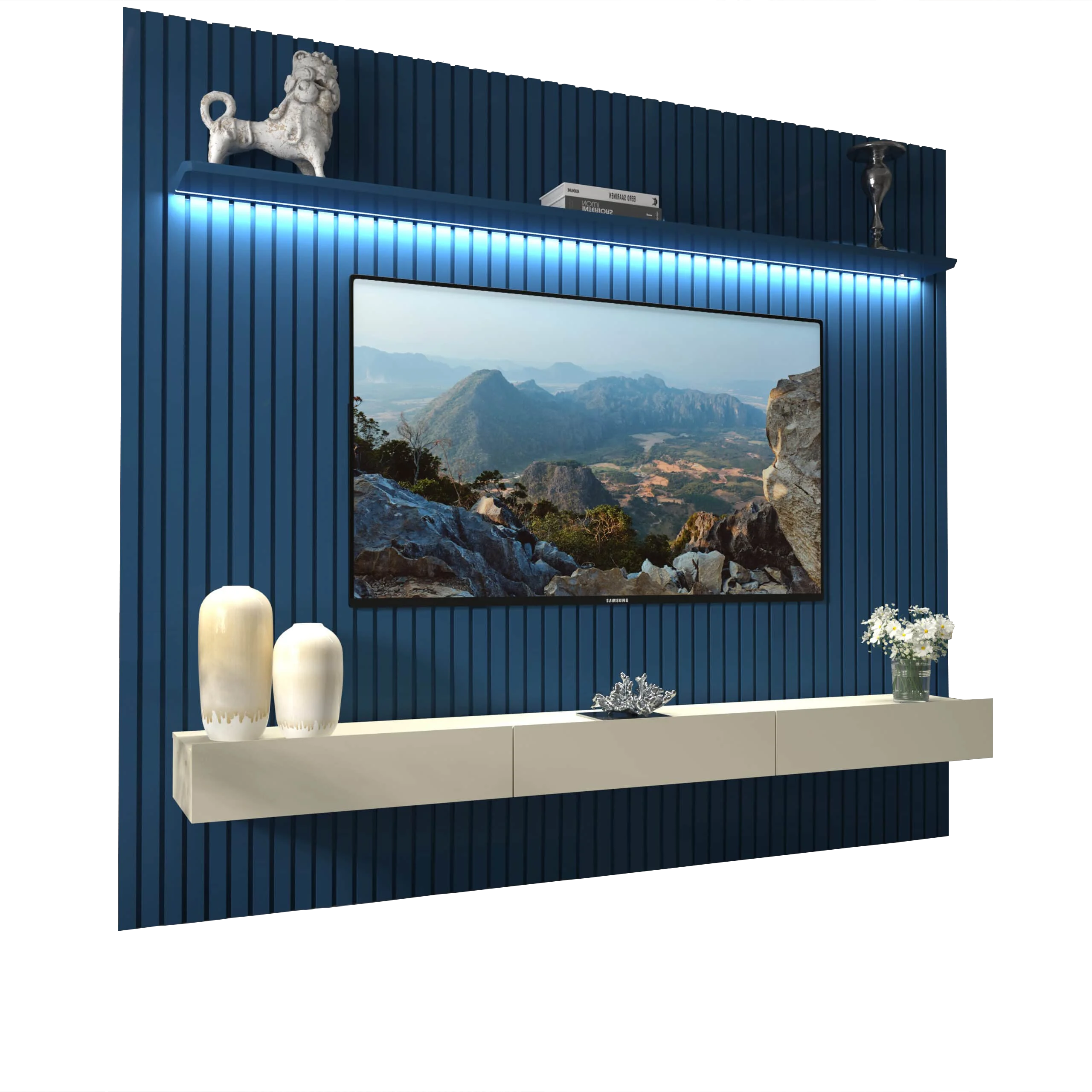 Home até 85″ Nobre Ripado (Com Nicho) Azul/Off White – GELIUS