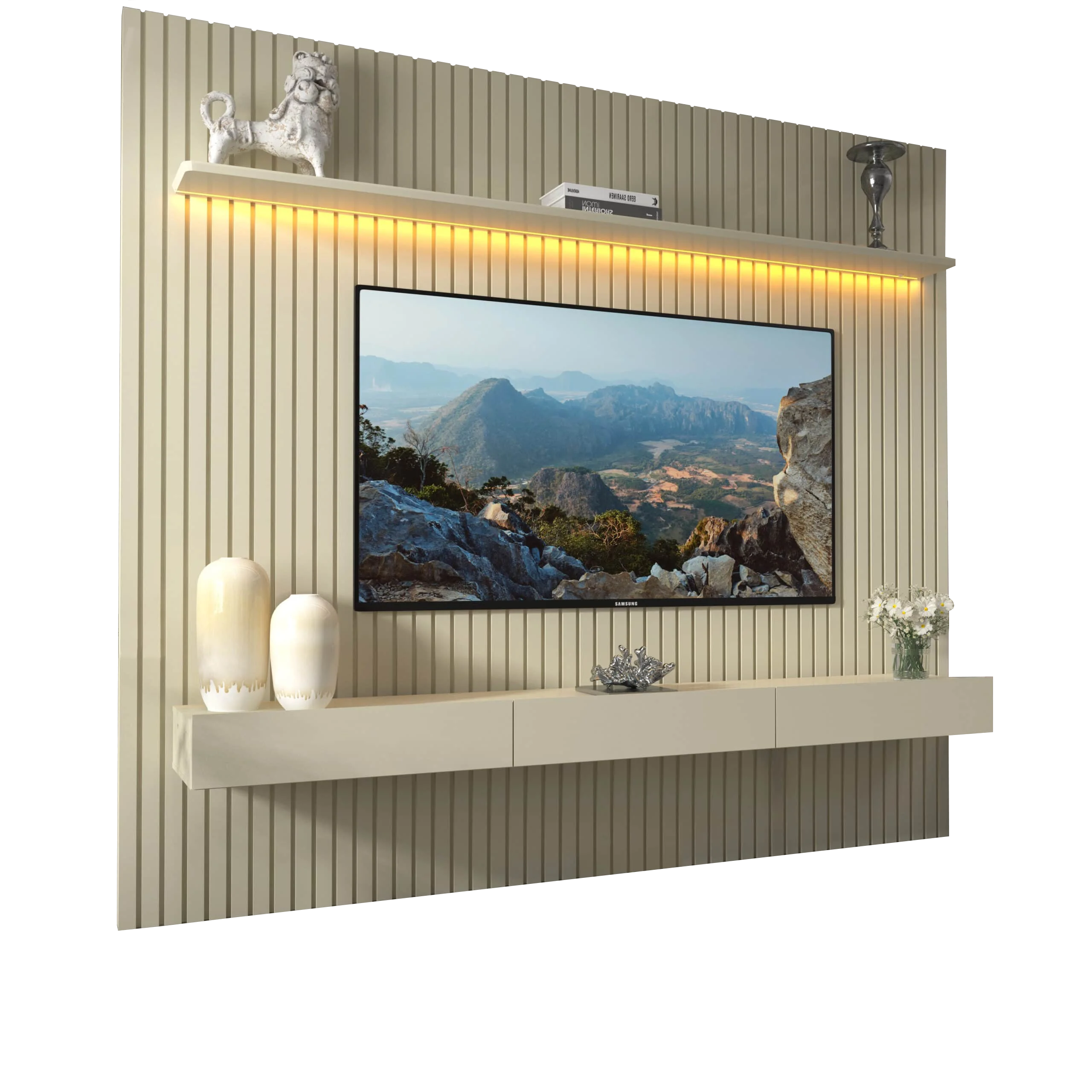Home até 85″ Nobre Ripado (Com Nicho) Off White – GELIUS