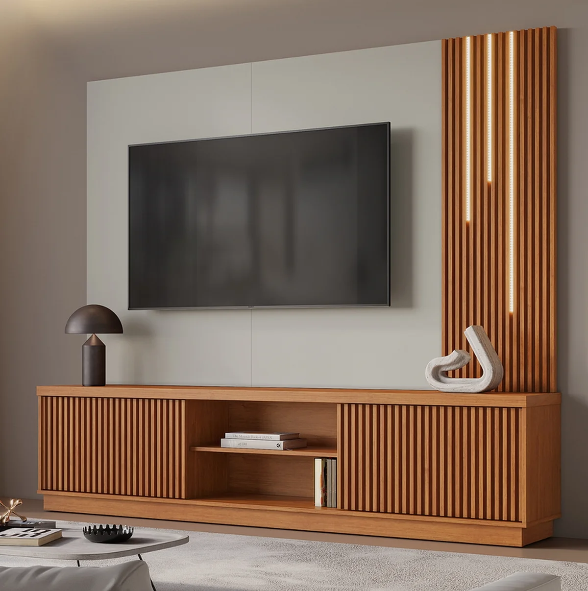 Home Theater até 75″ Valência/Arezzo New LED Naturale/Off White – MAVAULAR