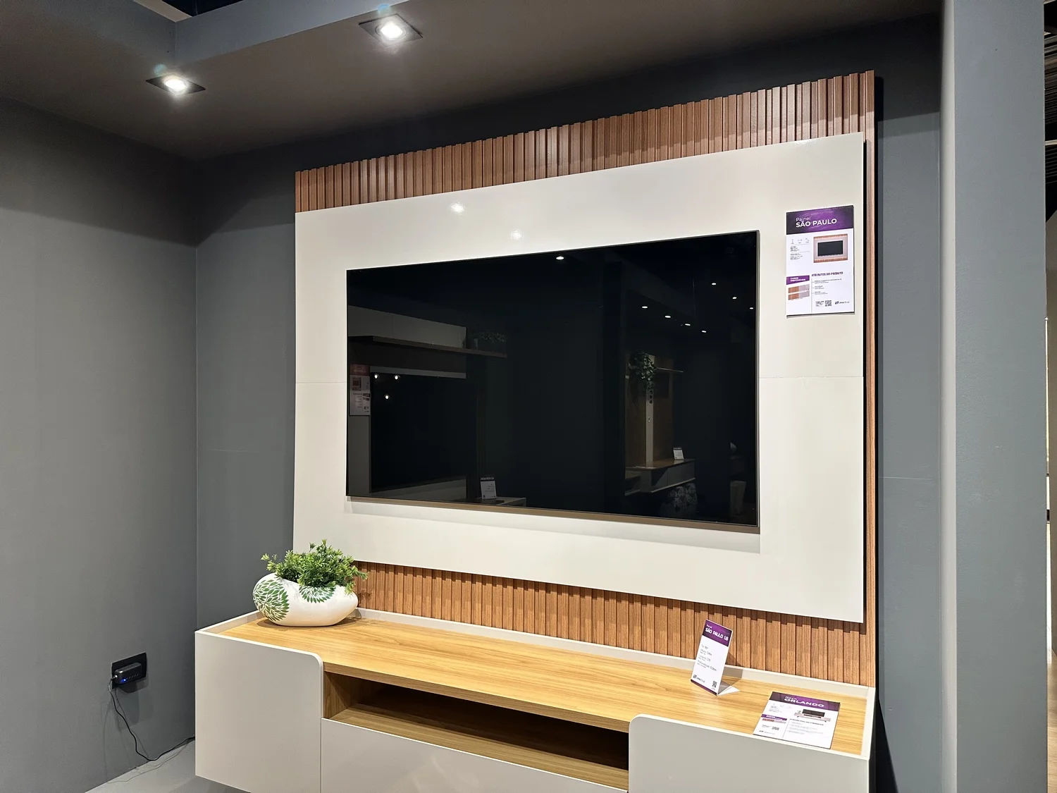 – Espaço para TV: 114 cm x 175 cm (AxL)