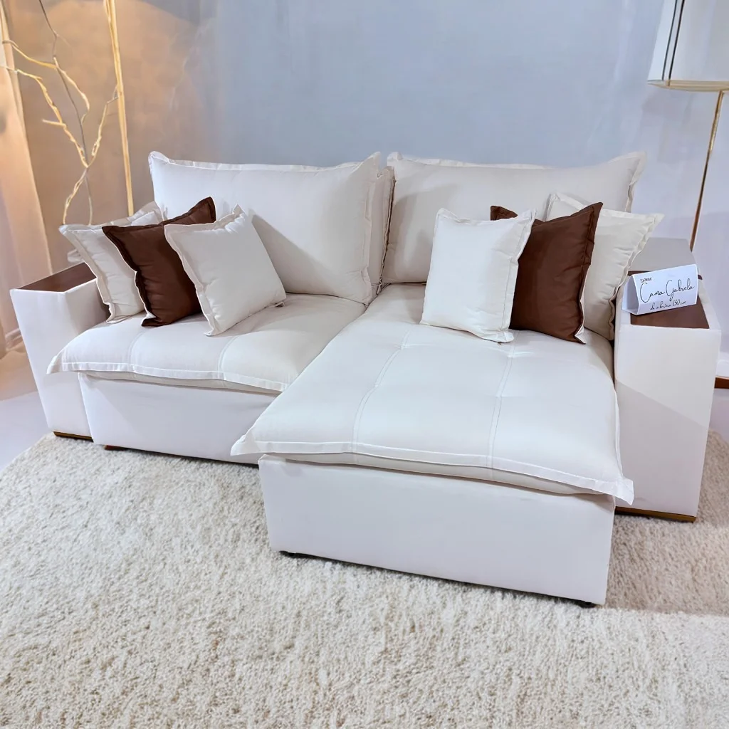 Sofa Cama Tebas/Thebas/Gabriela 2,50 m Linho Bege 313/Courino Dalas – ZARAT ESTOFADOS