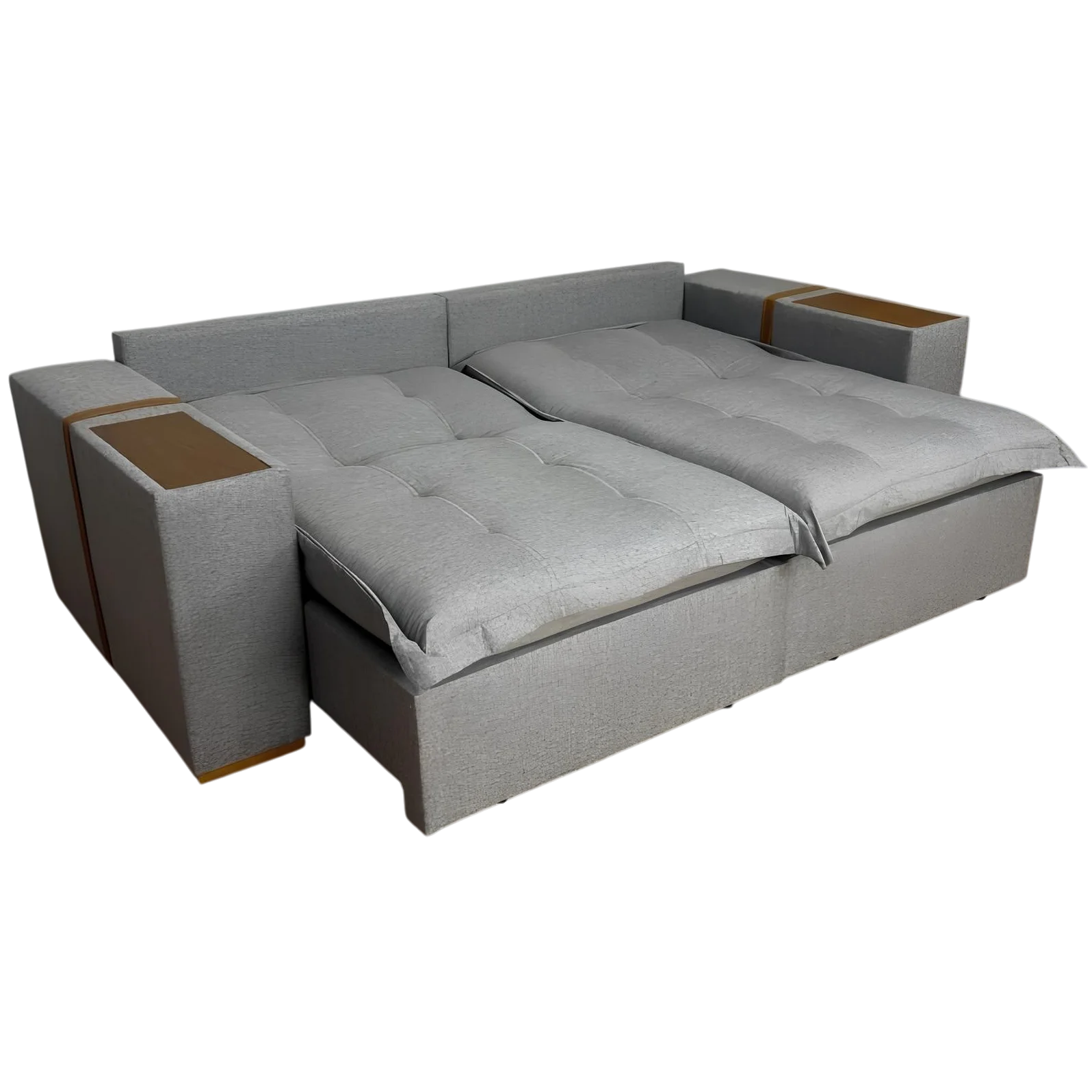 Sofá Cama Tebas/Thebas/Gabriela 2,50 m Linho Grafite 301/Courino Dalas – ZARAT ESTOFADOS