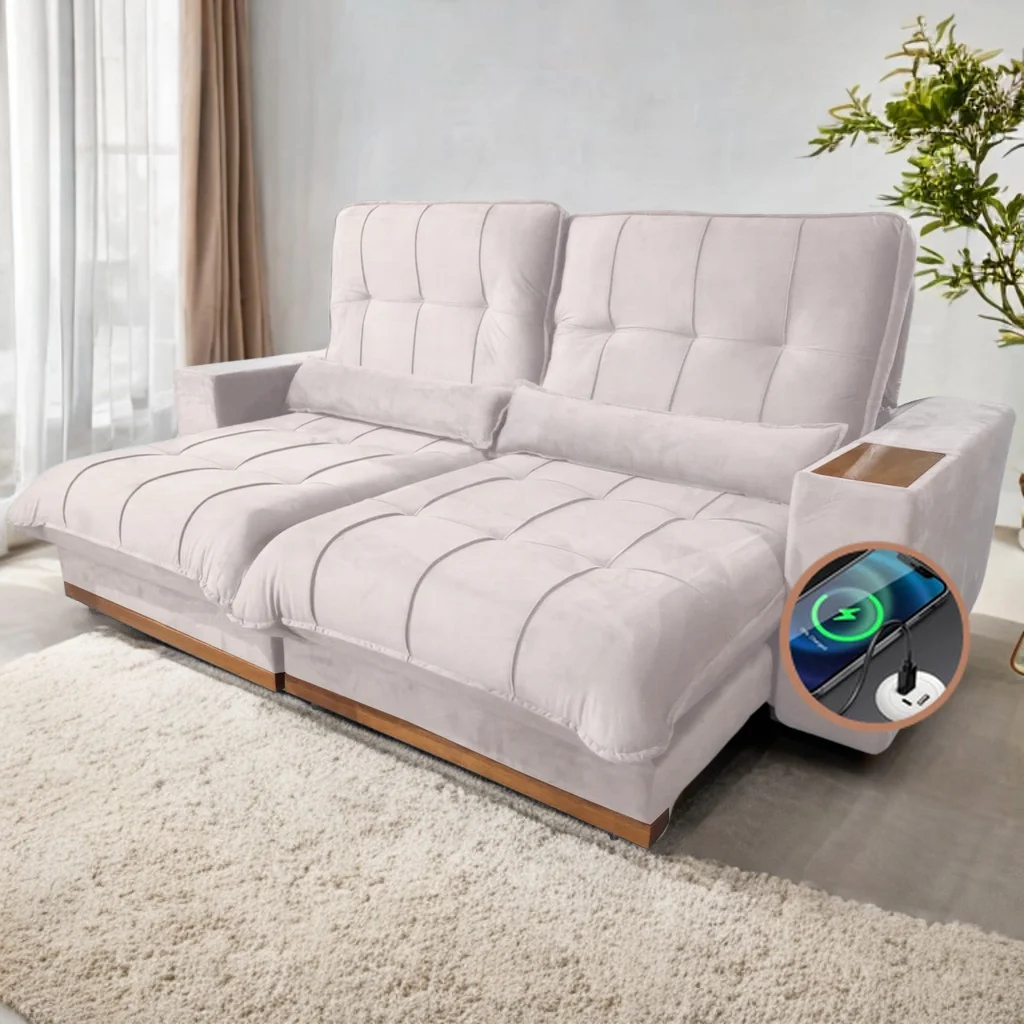 Sofá Retrátil e Reclinável Azarro 2,50 m Bege – ZARAT ESTOFADOS