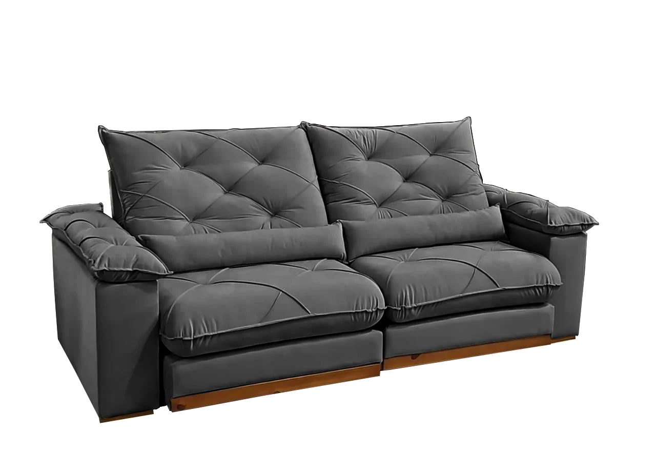 Sofá Retrátil e Reclinável Gran Paladium (Pillow) 2,50 m Veludo Cinza – IMPÉRIO DECOR