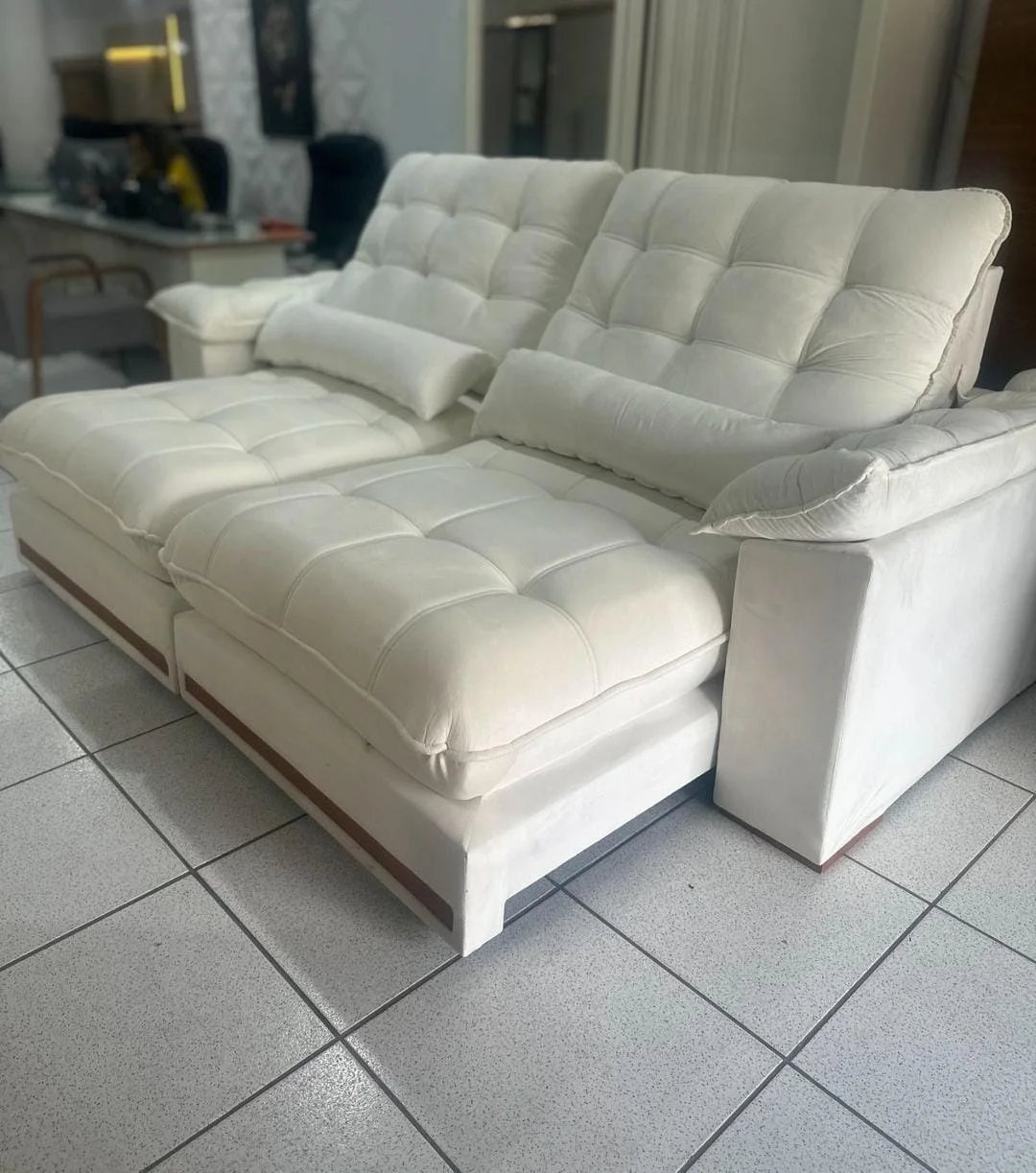 Sofá Retrátil e Reclinável Hércules 2,50 m Veludo Marfim – VICAM ESTOFADOS
