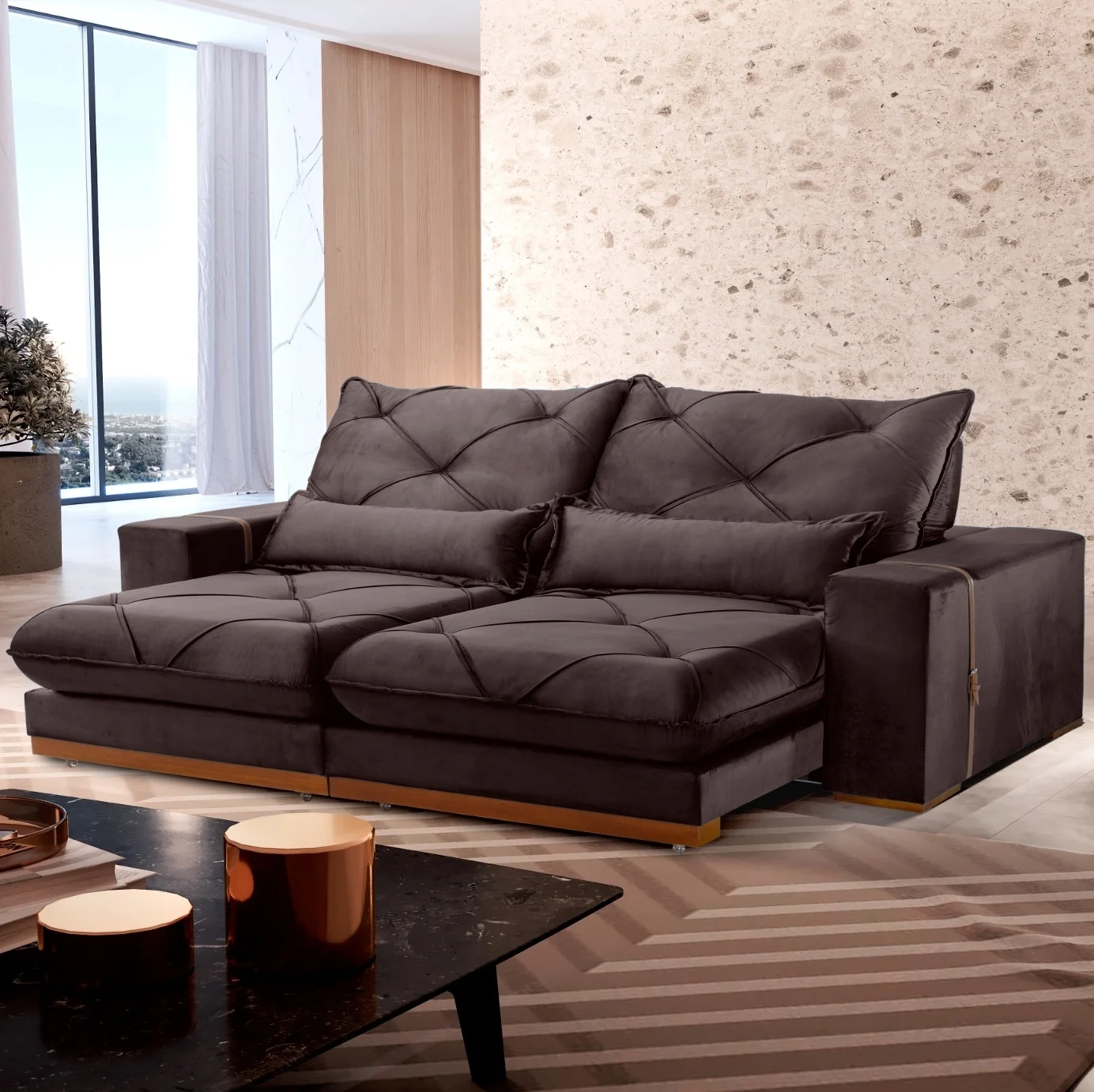 Sofá Retrátil e Reclinável Luanda/Isabella/Barcelona 2,50 m Veludo Marrom – TREVO ESTOFADOS