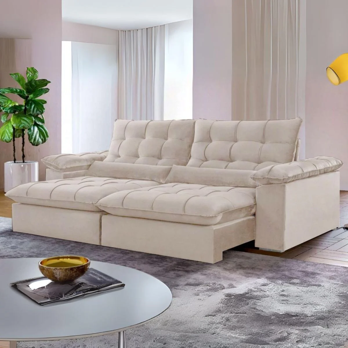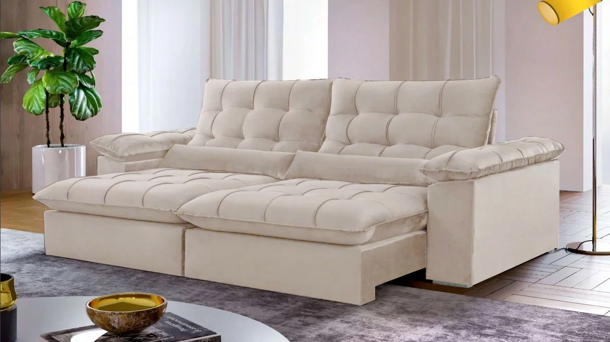 Sofá Retrátil e Reclinável Malibu 2,50 m Bege – VIVAZ ESTOFADOS