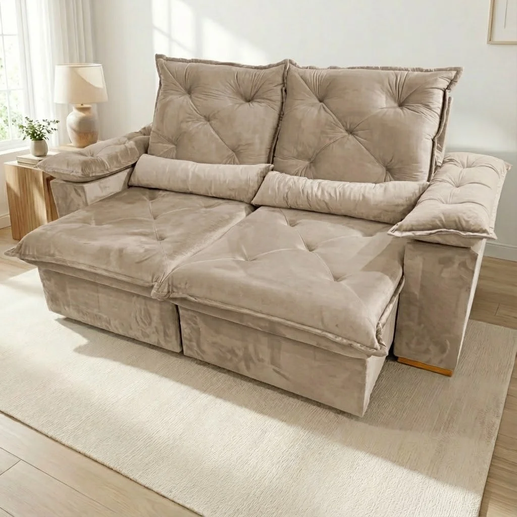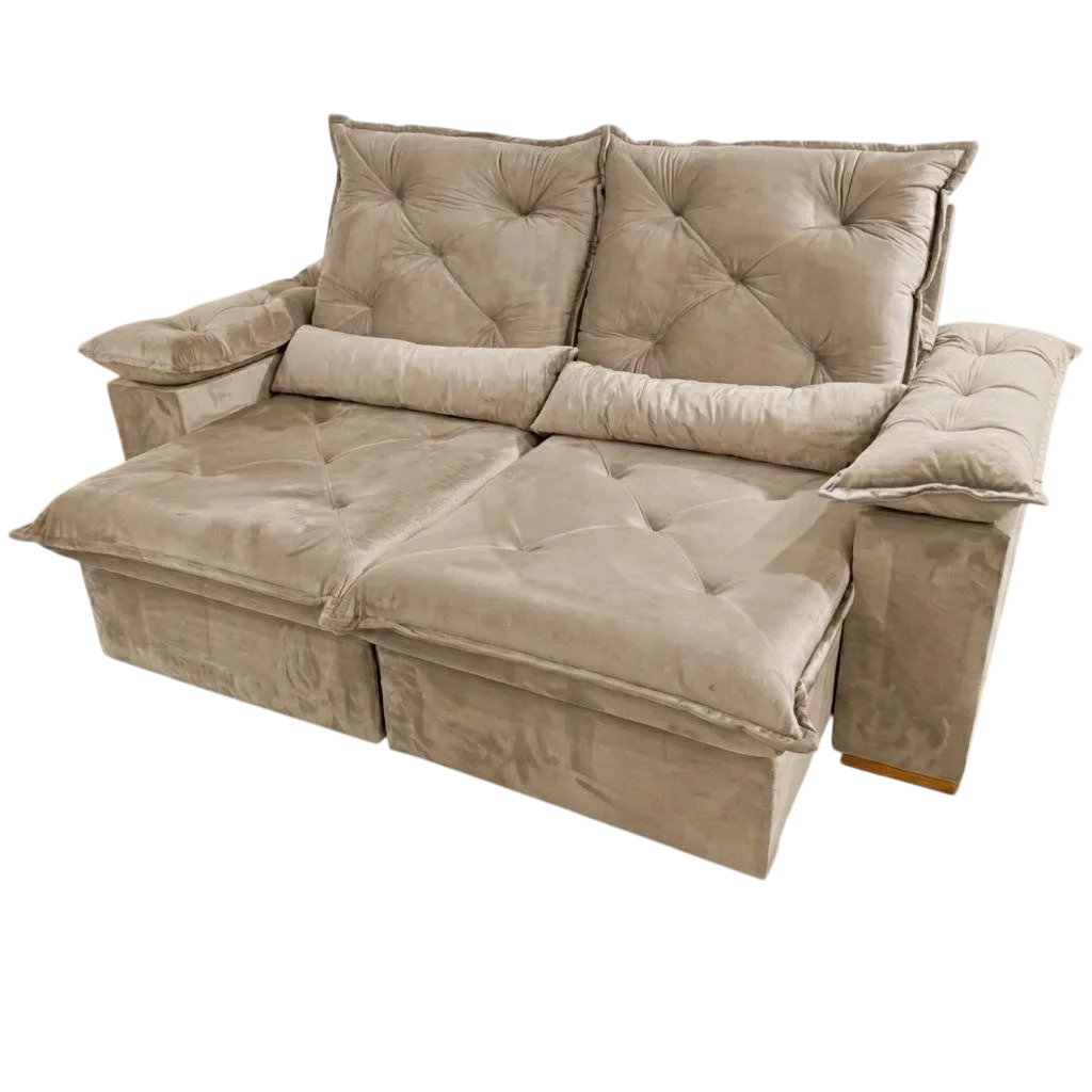 Sofá Retrátil e Reclinável Porto Madero 2,00 m Veludo Bege – IMPERIAL DECOR